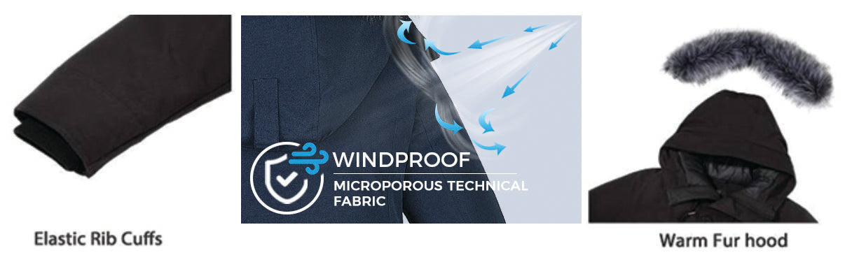 The big hood with faux fur trimming can protect your face and neck completely. The adjustable and ribbed cuffs and adjustable hem leave no chance for the wind to come inside.