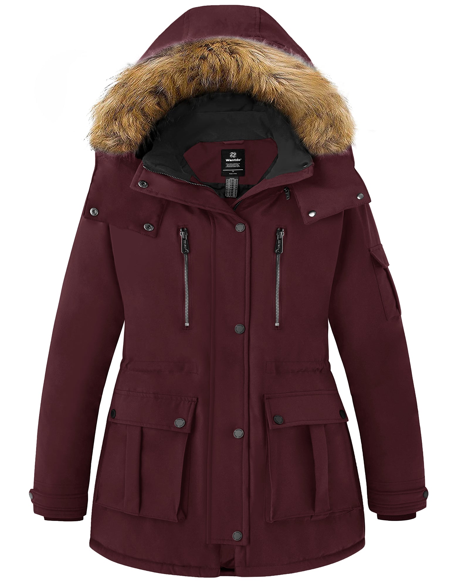 • A Warm Embrace - Plus size parka jackets for women use soft 240 grams of cotton padding. This plus size women's winter jacket is made with a long-lasting shell and adding an adjustable detachable fur hood, fleece-lined hand pockets, elastic waist, and snap-button cuffs. Every detail is exquisitely designed to make you enjoy winter.