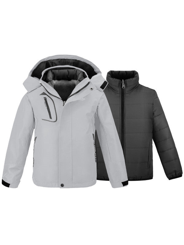 Boys Winter Warm Jacket 3 in 1 Ski Waterproof Hooded Snow Coat