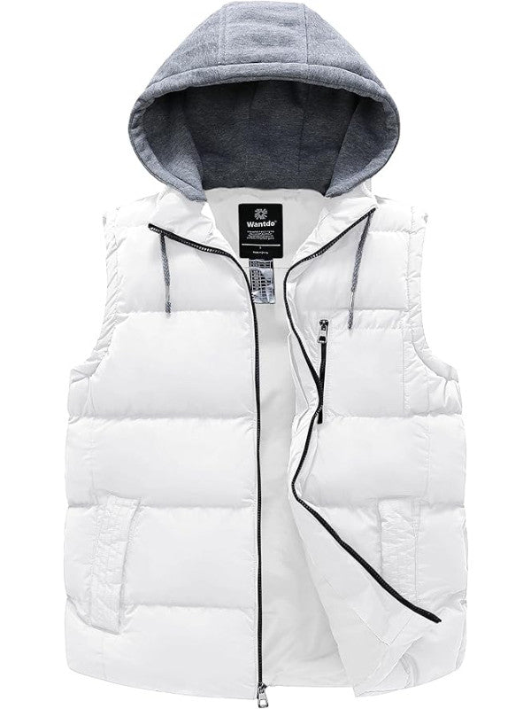 Wantdo Men's Quilted Winter Vest Warm Thicken Sleeveless Puffer Jacket with Detachable Hood E19