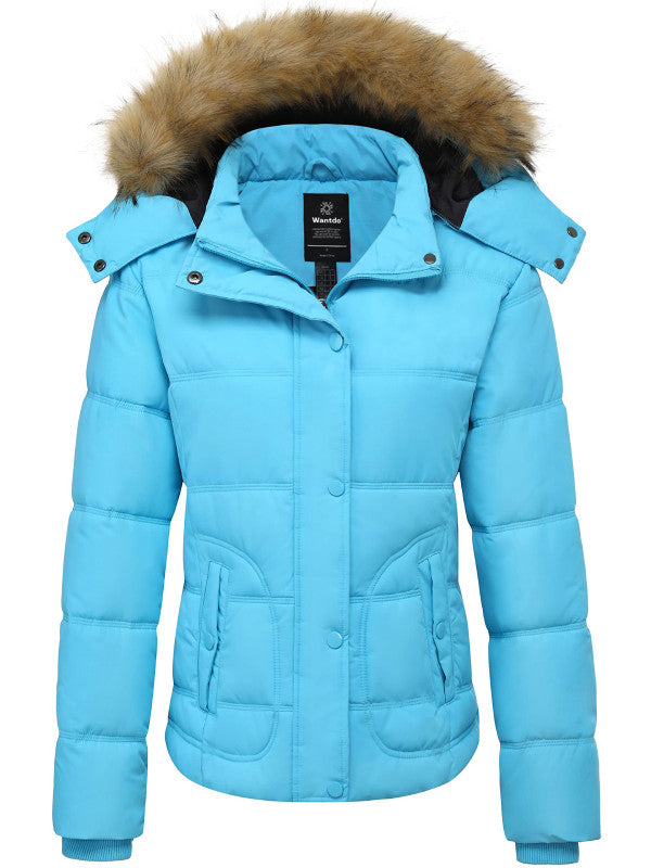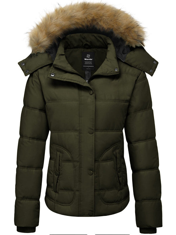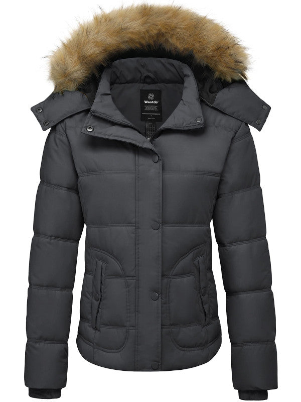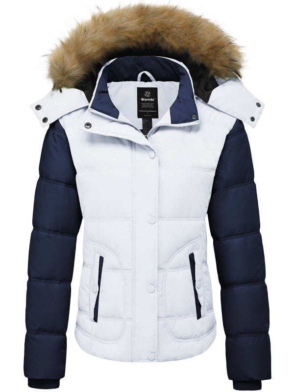 • Wantdo Women's Quilted Puffer Jacket Padded with Faux Fur Hooded Valley II