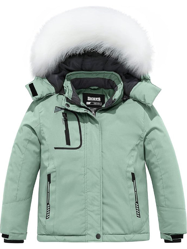 • Skieer Girl's Ski Jacket Windproof Winter Jacket Fur Hooded Waterproof Rain Coat