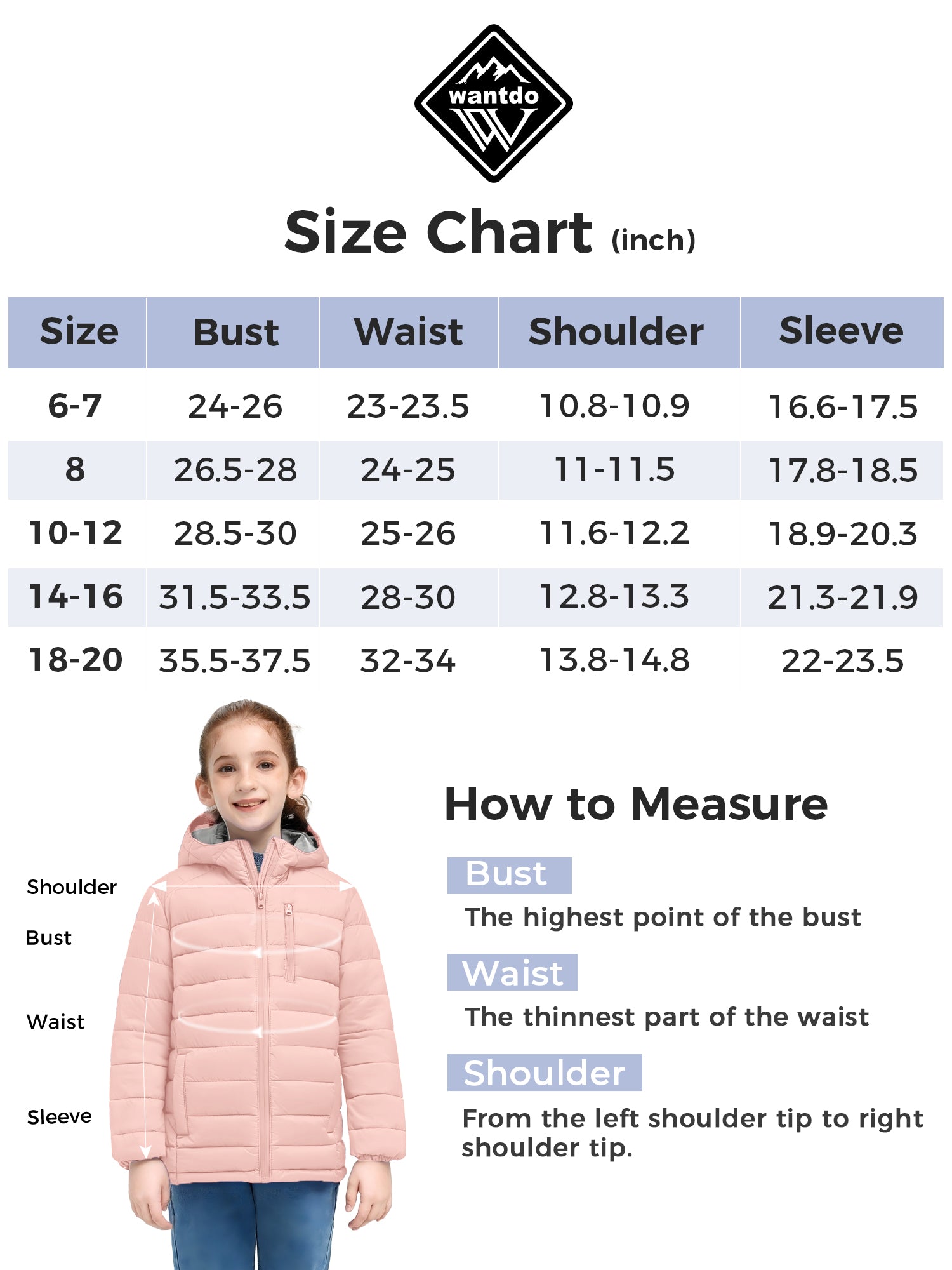 Occasions: Wantdo girl's winter jacket is a versatile piece. Whether your child is going on a camping trip/climbing/hiking/picnicking, engaging in outdoor play, or having a snowball fight, this girl's coat can be worn for a variety of occasions.