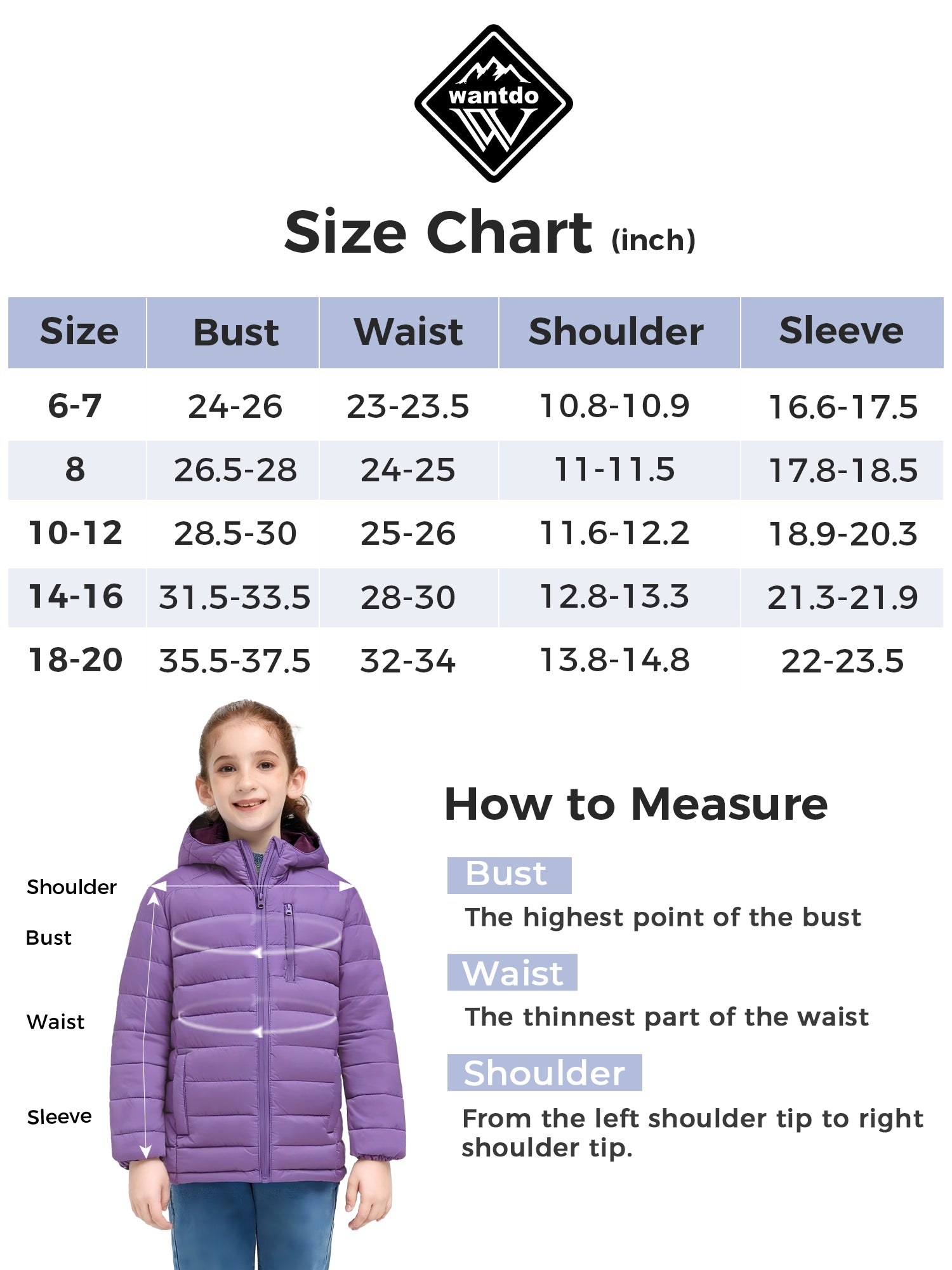 • Wantdo girls lightweight winter coat hooded puffer jacket